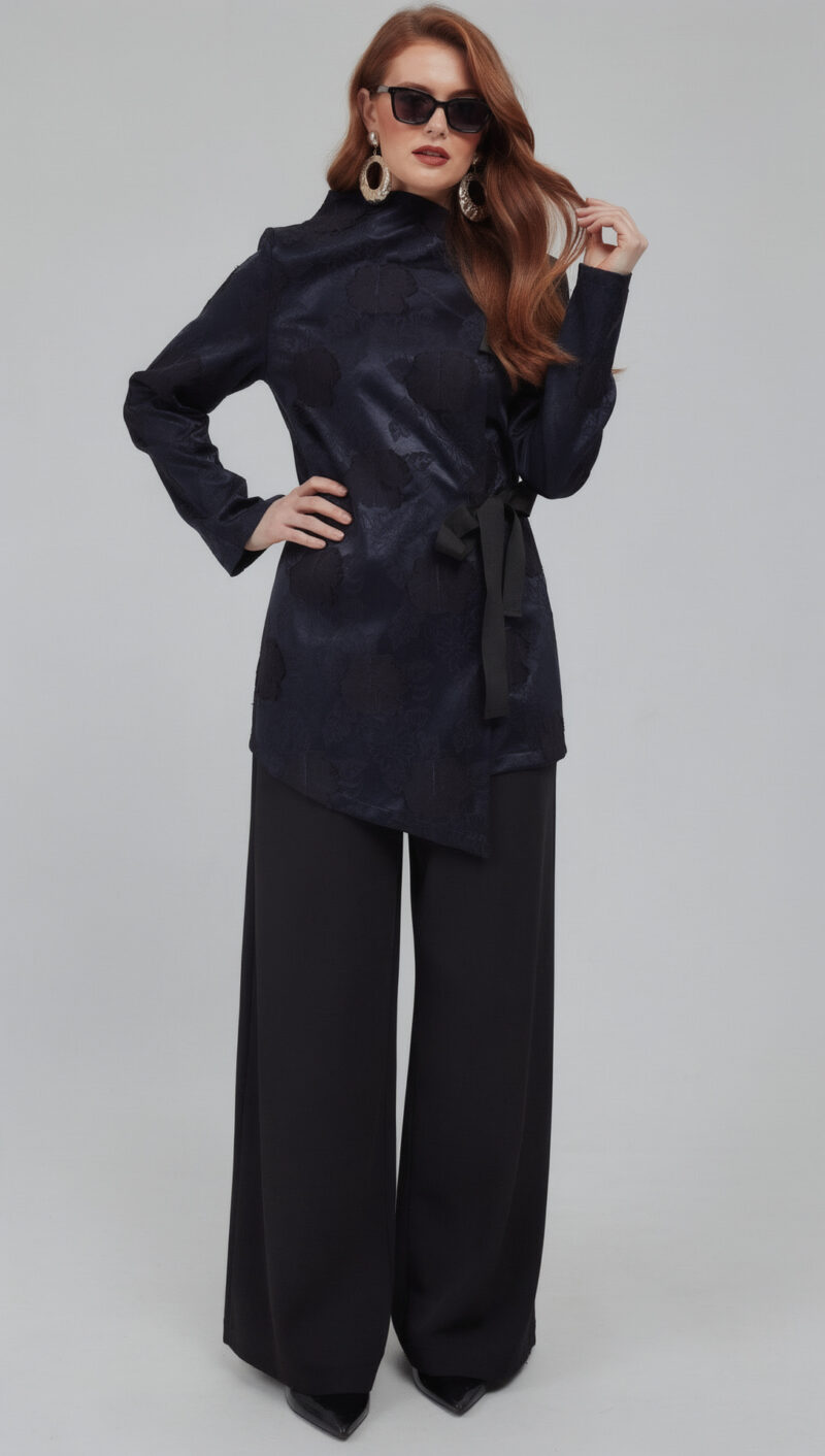 Hlače Nera su elegantne crne široke hlače s produženom linijom nogavica i fluidnim padom, dizajnirane za suvremen, snažan i profinjen izgled.