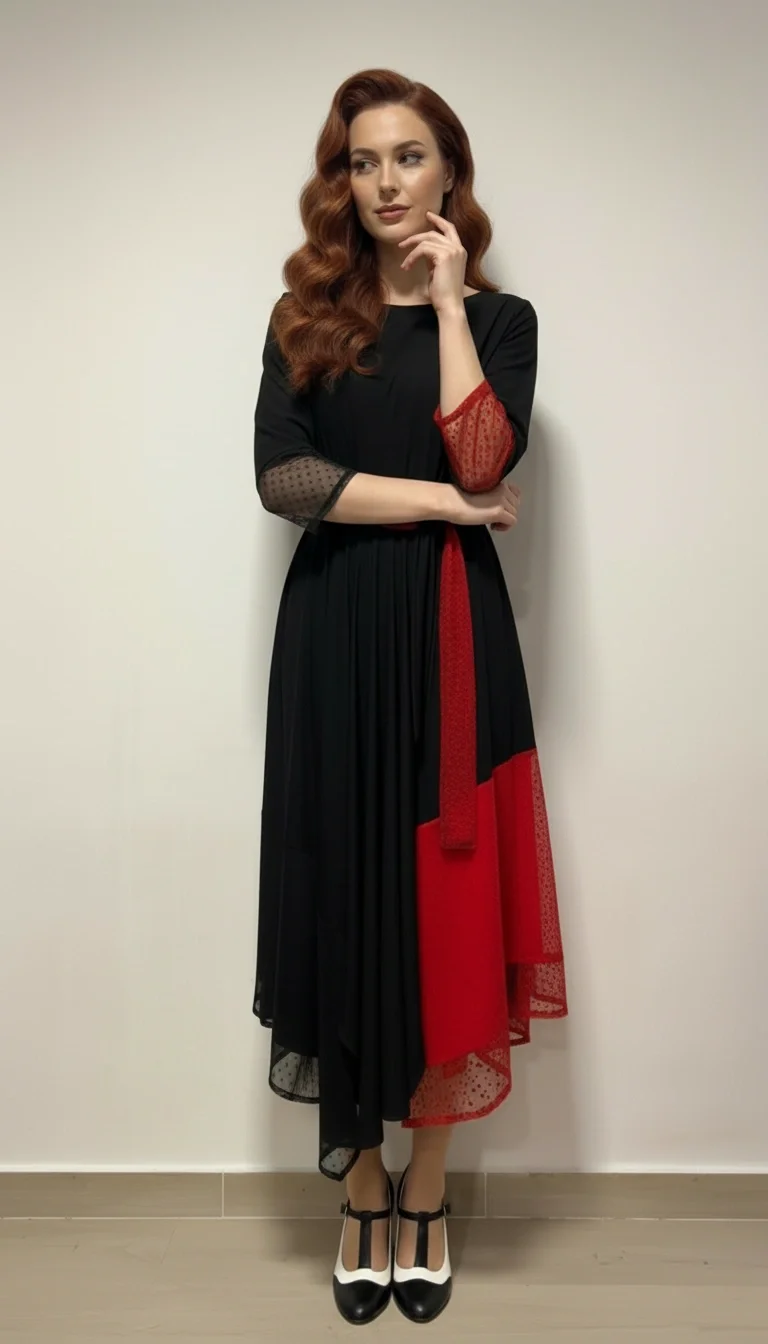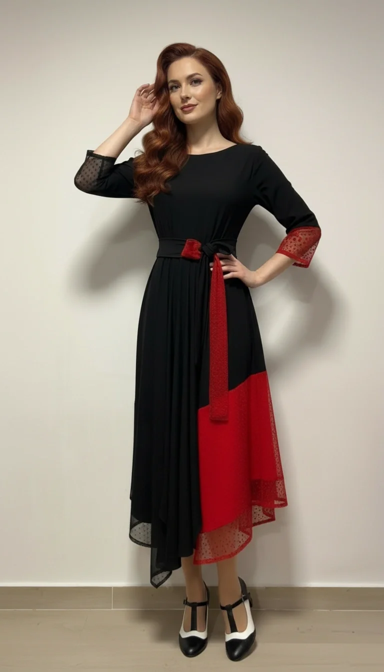 Haljina JILL očarava dramatičnim spojem crne i crvene boje, naglašavajući samopouzdanje i eleganciju. Asimetrični kroj i efektni detalji od čipke ističu ženstvenu siluetu, dok pojas u struku daje savršeni naglasak. Ovo je haljina koja osvaja na prvi pogled i ostavlja dojam u svakoj prilici.
