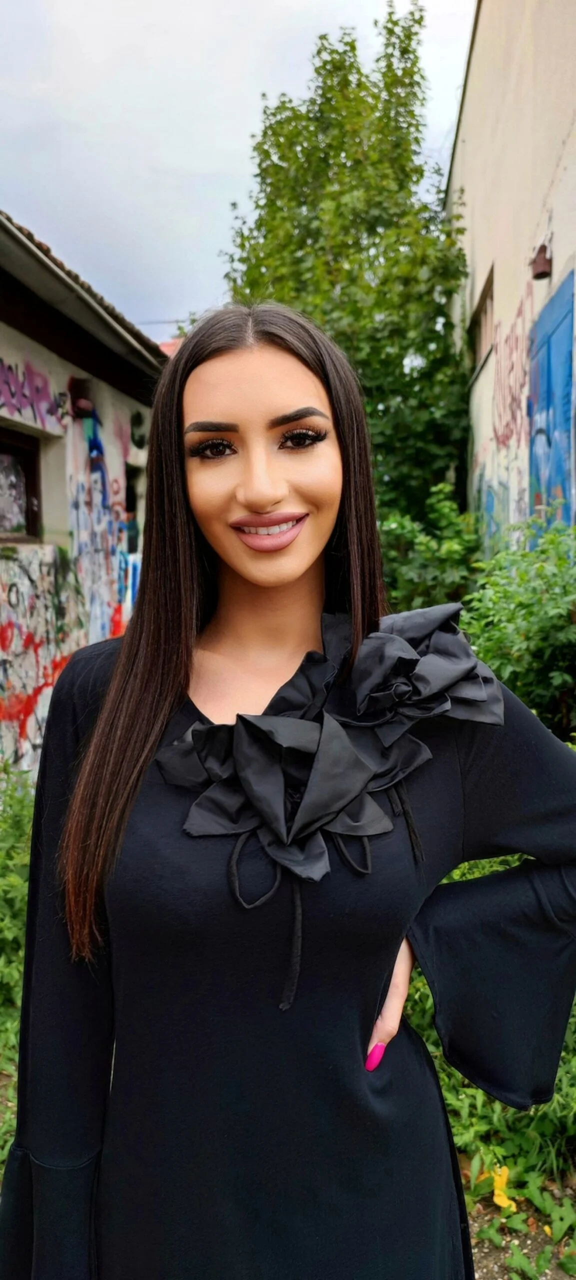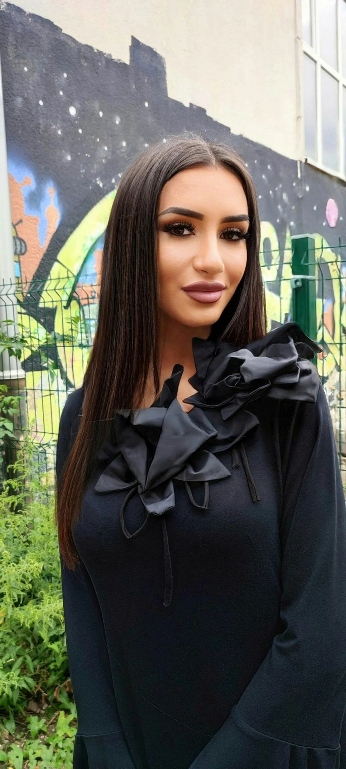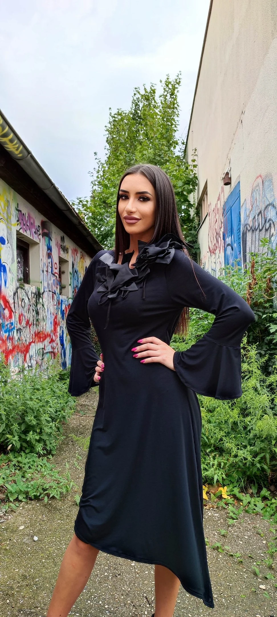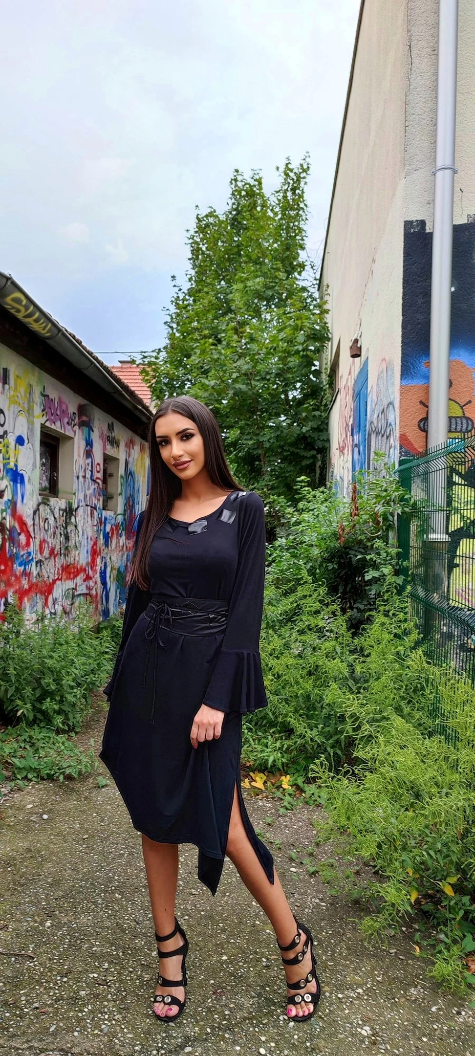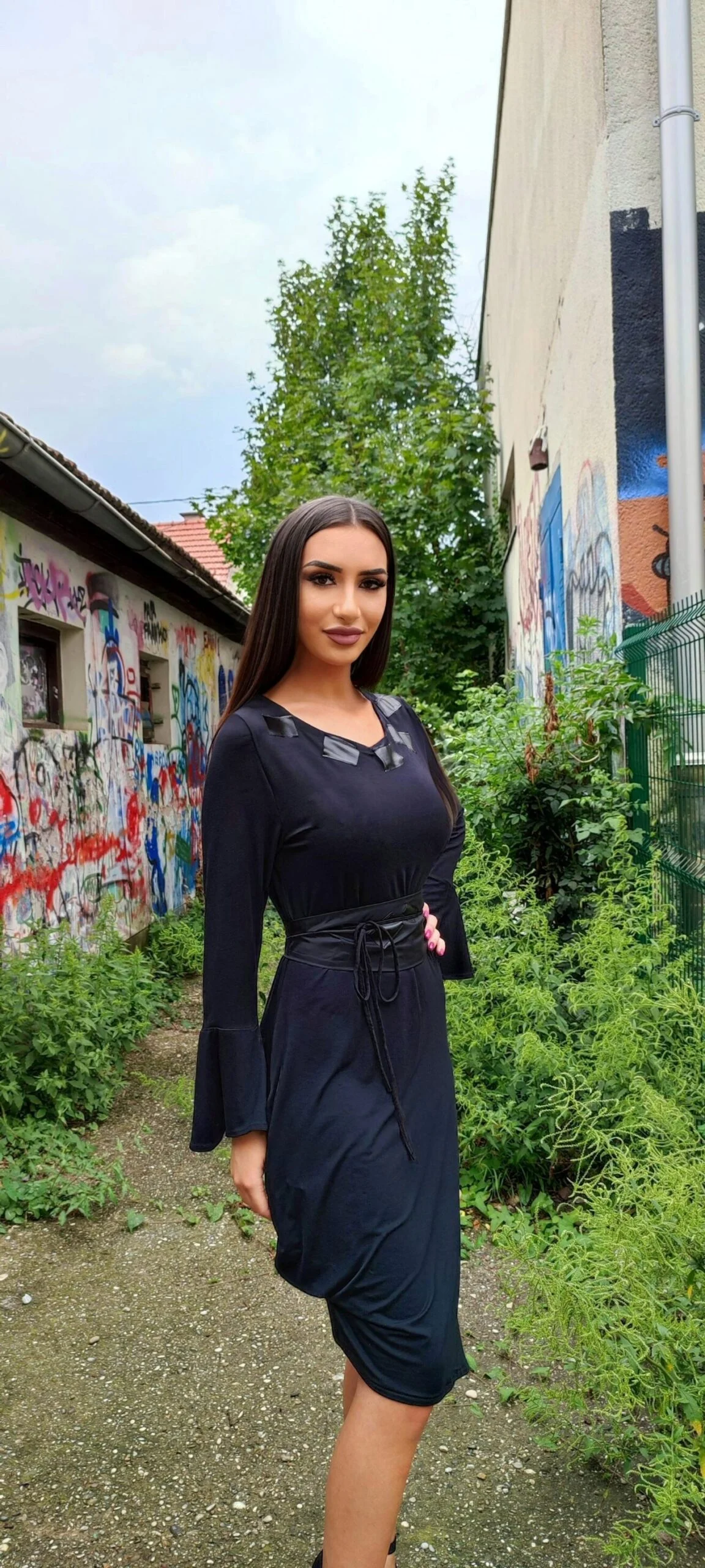 Haljina KAJA donosi sofisticiranost s asimetričnim krojem, raskošnim cvjetnim detaljem i remenom koji naglašava struk. Idealna za posebne prilike i večernje izlaske.