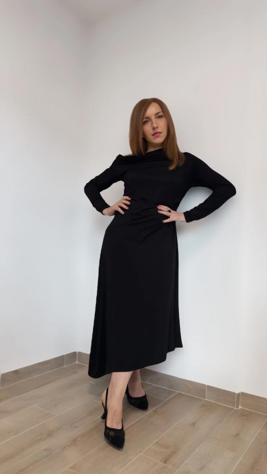 Zakoračite u svijet u kojem se snaga i ženstvenost spajaju u jedno – zakoračite u haljinu MORRIGAN. Dizajnirana da očara i osnaži, ova crna haljina je više od odjeće; ona je stav.