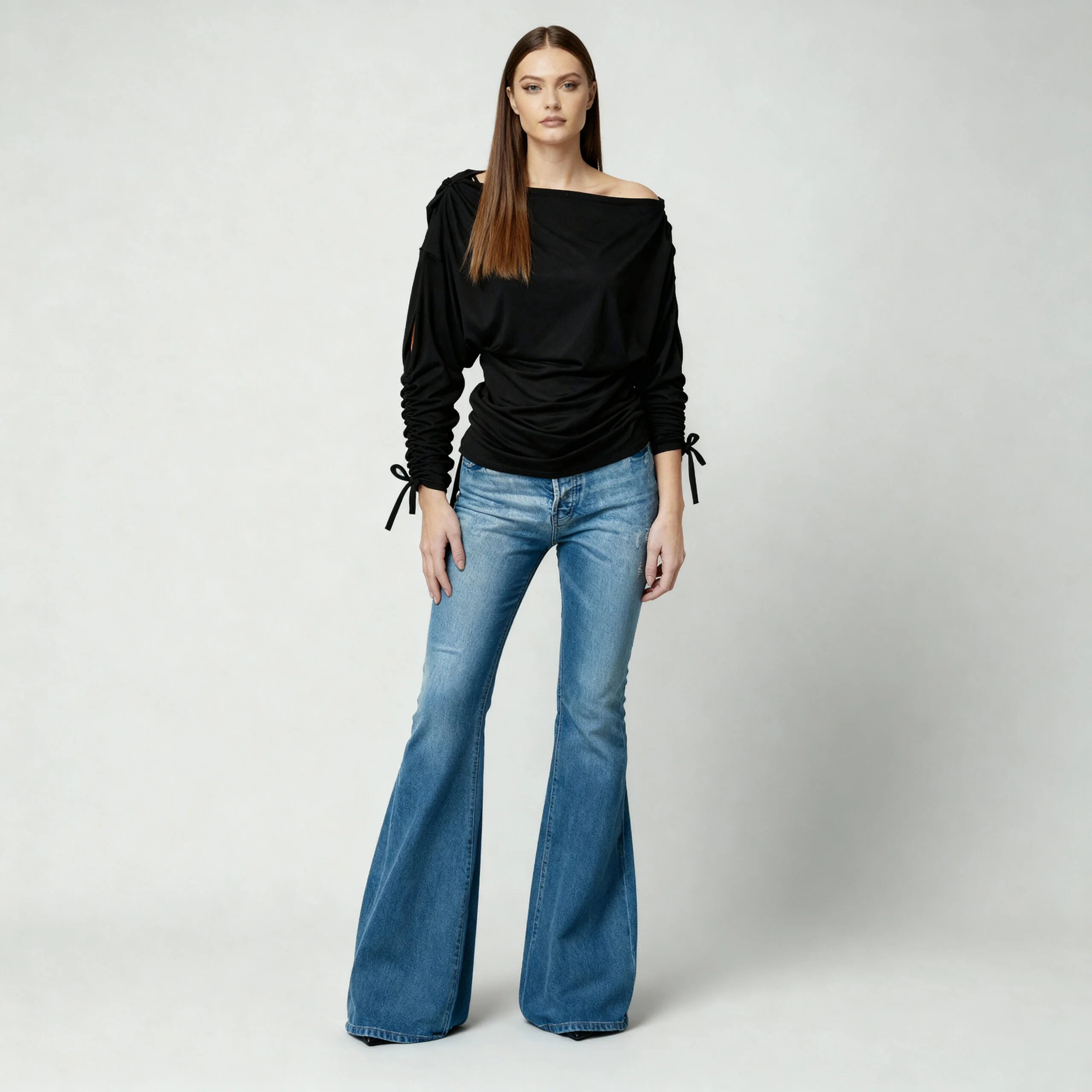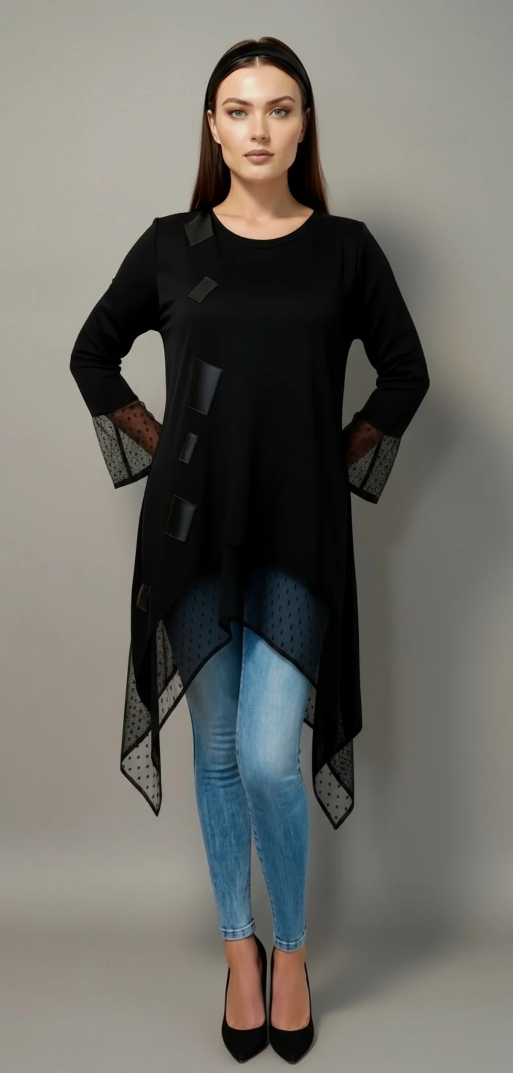 Košulja BELLADONNA je bijela asimetrična košulja s decentnim linijskim detaljima i efektom raspoređenih ukrasnih gumbića na rubu i rukavima. Široki, lagano zvonasti rukavi dodaju posebnu eleganciju, a zanimljiv dizajn čini ovu košulju odličnim izborom za razne prilike.