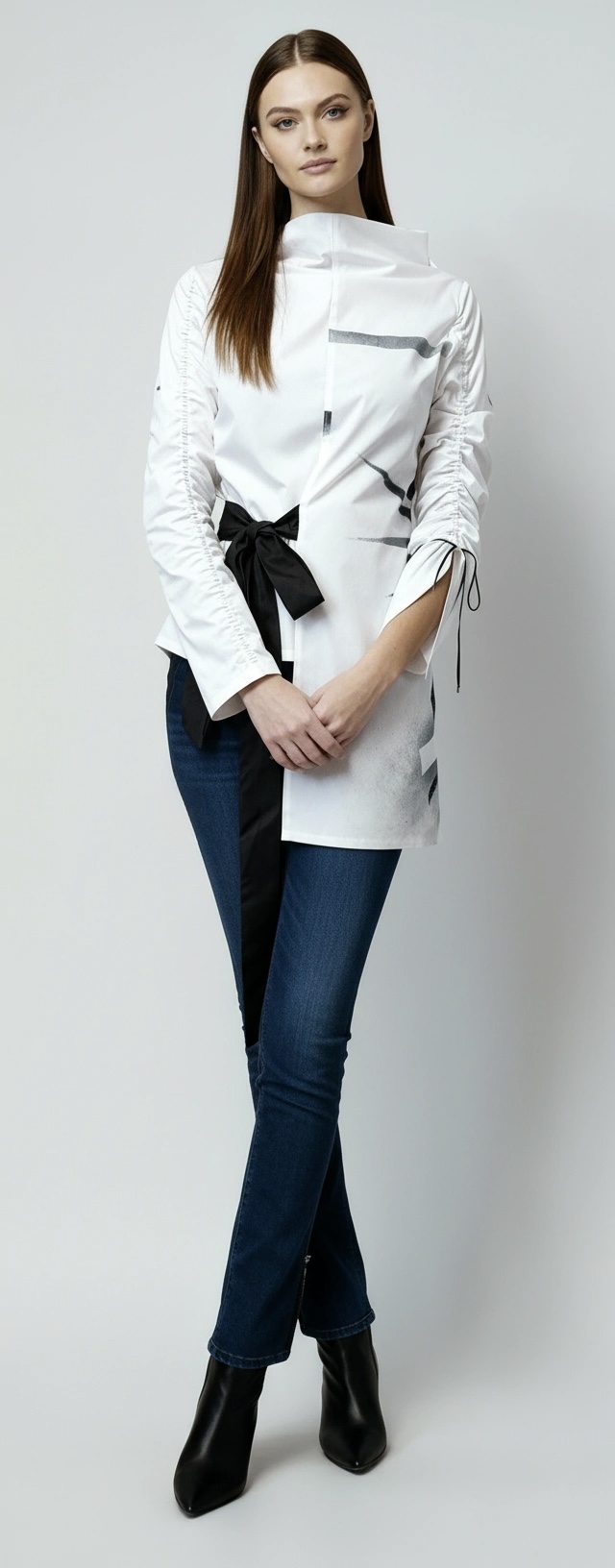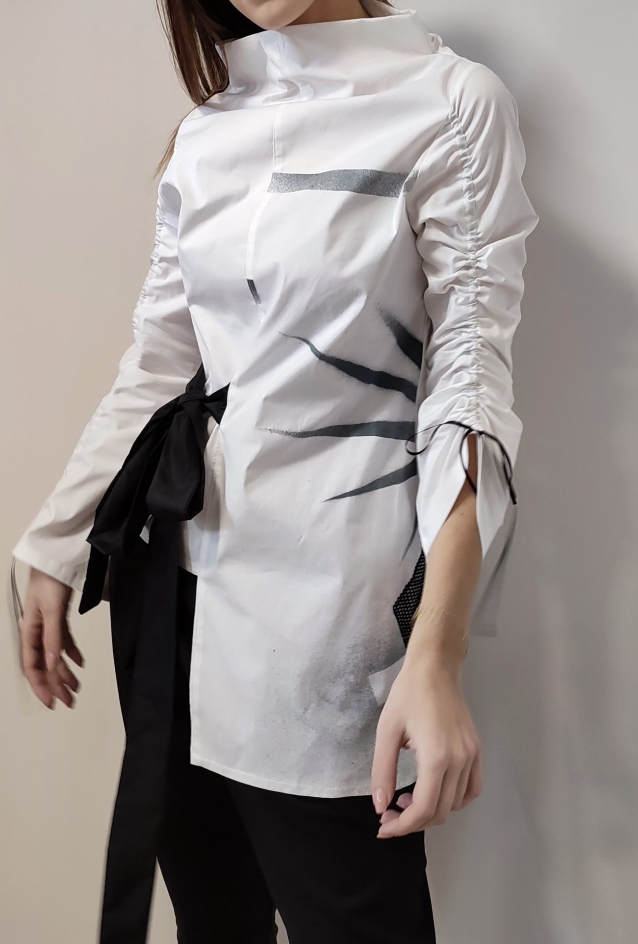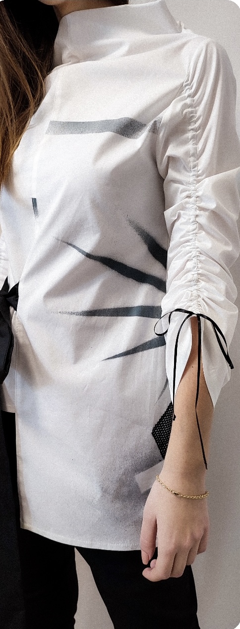 Košulja VIENNA je dizajnerski statement komad koji spaja klasičnu eleganciju s umjetničkim pristupom. Ručno oslikana s pažnjom i strašću, svaki komad nosi jedinstveni pečat – nije samo košulja, nego komad koji priča priču. Sa svojom futurističkom siluetom i profinjenim detaljima, VIENNA transformira osnovnu bijelu košulju u umjetničko djelo nosivo u gradskim kombinacijama, poslovnim outfitima ili večernjim stylinzima.